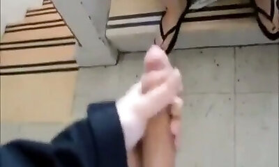 Shameless super-bitch is gargling me off on the stairs and she's so relentless
