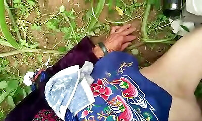 Old dude wedges his dick in a younger girl's labia in outdoors