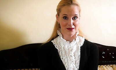 Hot and pretty light-haired gal in beige nylon stocking Maxim Law teases herself