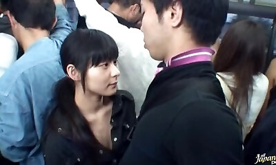 Japanese babe with immense boobs likes to get molested in the bus, on her way home