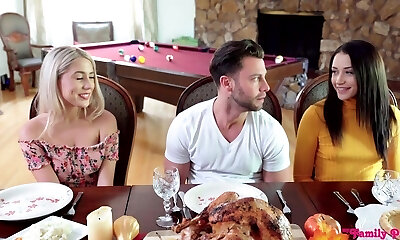 Obscene young beauties take turns fucking with their bland stepbrother in a family trio.