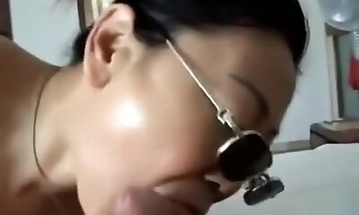japanerin mit sonnenbrille tiefe kehlen lutscher, während immer finger-schlug