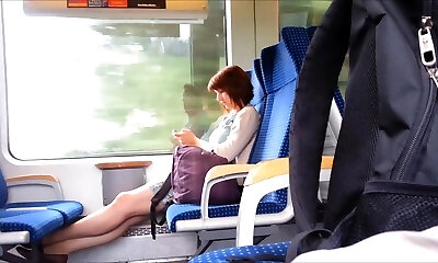 dunkelhaarige gibt einen öffentlichen blowjob im zug