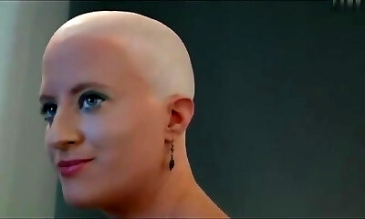 seltsame dame bekommt ihren kopf vor allen kahl