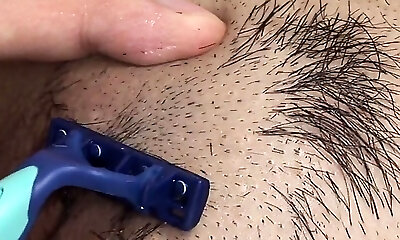 bitte hilf mir, meine büsche zu schneiden. rasieren der muschi von frau'in pov. amateurvideo zu hause