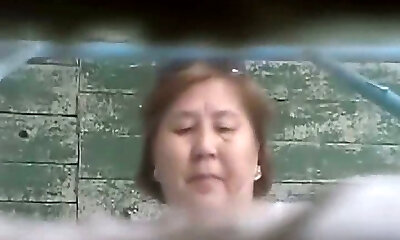 Mature Asian female in the well-worn toilet room filmed on hidden cam